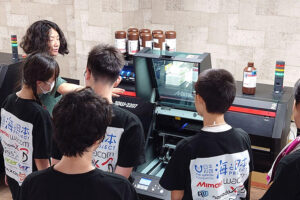 初日の舞台は高知市内の株式会社吉本3Dファクトリー。ずらりと並んだ各種3Dプリンターを前に、研究生たちは目を輝かせました。