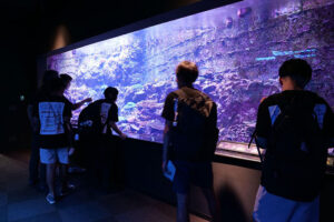 写真右:足摺海洋館SATOUMIを見学する研究生たち