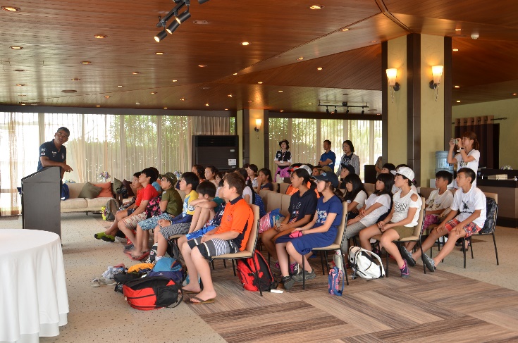 一般社団法人日本海洋アカデミー理事である、白石康次郎氏による子どもたちへの講演会を実施しました。海の楽しさや厳しさ、自身の世界一周のヨットレースでの経験を踏まえたエピソード等を子どもたちに話しました。挑戦することの大切さ、好きなことを見つけ、好きなことをしていくためにはどうすればよいかを熱く語り、子どもたちも真剣に話を聞いていました。