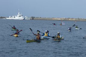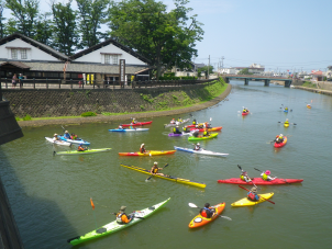 酒田港と酒田市内を流れる新井田川等の水域をコースにシーカヤックで周遊するイベントを開催しました。