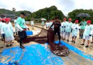 延岡市・須美江海水浴場にて、かつてこの地域で行われていた伝統的な漁法「地引網漁」を体験する学習を実施しました。今回の体験を通じて、子どもたちは漁師の仕事の大変さや自然の恵みのありがたさ、そして働くことのやりがいを肌で感じることができました。