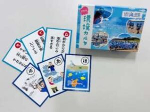 使用したのは、海と日本プロジェクトin みやざきのオリジナルで、県北・門川町の海を題材にした『門川環境カルタ』。このカルタは、かつて門川の海について学んだ子どもたちが、自分たちの体験や感じたことをもとに作成したものです。