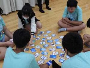 カルタ大会では、子どもたちは真剣な表情で札を見つめたり、楽しそうに素早く札を取ったりと、夢中になって取り組んでいました。途中には、読み札の内容にあわせて、村瀬先生が丁寧に解説を加えてくださり、そこに描かれている海の自然や環境についても学ぶことができました。