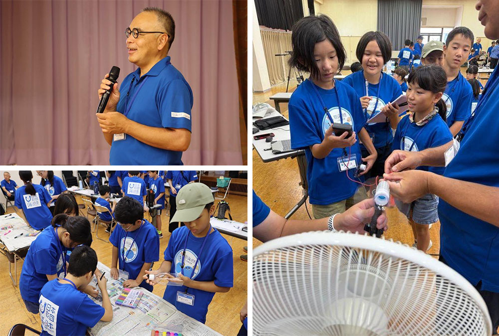 洋上風力発電について専門的なことをたくさん学んだあとは、風力発電そのものについての学びを深めます。教えてくださるのは長崎総合科学大学の松岡教授。風力発電は風の力で風車を回し、その回転をもって電力を得る発電機。重要なのは効率的に風車を回すこと。松岡教授はこの講義で、班ごとに風車の要件を設定し、どのような設計が一番高い電力を得られるかということを子ども達に考えてもらいます。各班思考を凝らして、羽を増やしたり、大きさや角度を変えたりして電力を計りました。結果、班ごとに様々な意見を議論する形となり、これが正解、というものは見つかりませんでしたが、そうやって正解を探していく過程も大事だということがわかるとても重要な講義でした。