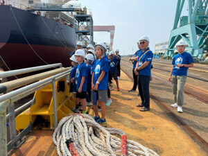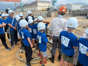 海と日本プロジェクトinながさきは、8月21日(木)~23日(土)の3日間、長崎の海で行われている環境保護・自然保護の取り組みや、海の課題解決に向けた取り組みについて学ぶ「長崎港みらいクルーズ」を開催しました。このイベントは長崎県内の小学5.6年生を対象にした体験型イベントで、洋上風力発電の人材育成センターや、長崎BLUEエコノミーの完全養殖システム、大島造船所の最新の造船見学などを通して、海の課題を自分ごととしてとらえ、発信してもらうことを目的としています。このイベントは、次世代へ豊かで美しい海を引き継ぐために、海を介して人と人とがつながる“日本財団「海と日本プロジェクト」”の一環で行われました。