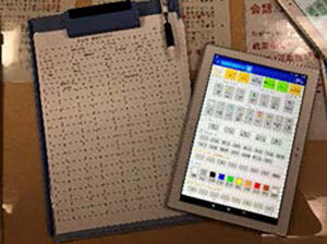 長崎から対馬までの航路で、2つの班にわかれてそれぞれおよそ1時間程度、ブリッジから目視により漂流物を観察する。色や大きさ、位置をタブレットを使って次々と記録していく。大きな「浮き」のような漁具が漂っていく。時折、ペットボトルの「群れ」が流れ、人の生活圏が近づいていることがうかがえる。天候や海流などの影響で、漂流する道があるのかもしれない。生徒たちは意見を交わしながら観察をつづけた。