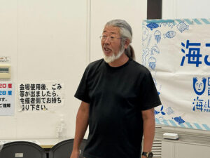 対馬の厳原交流センターで対馬CAPPA理事 末永通尚さんの講話