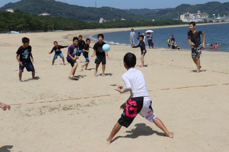 きれいな砂浜が広がる唐津市の西ノ浜。小学生の子どもたちを対象に参加者を募り、競技性のある海遊びを行いました。どれも海や浜辺だからこそ楽しめる遊びで、海ならではの楽しさを体感してもらいました。