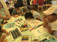 “海のゆりかご”アマモ場再生活動についての海の授業を行った後、お絵かきワークショップin玉野を開催しました。
