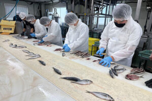 水産業界での人手不足が続く中、最新の機械を導入したり、外国人雇用を行うなど水産加工会社の実際の現場を間近で見学し、水産業界の新しいあり方を学びました。