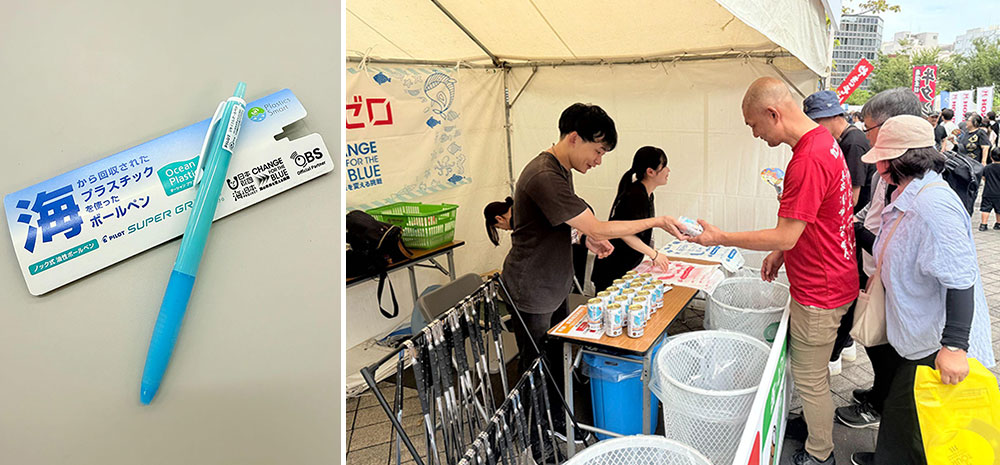 一般社団法人うみらいふは、2025年9月27日(土)・28日(日)に「手ぶらでちょこっとごみ拾いブース」をOBS感謝祭内で出店いたしました。今回のイベントでは、ファミリー層を中心に両日合わせて5,000名の方が会場内のごみ拾い活動および、ごみの分別作業を行っていただいたことにより会場内が清潔な状態を保て、海へと流れ着くごみの削減にもつながったと考えています。ごみ拾いに参加していただいた先着500名様に、アップサイクル品として海洋ごみで作られたボールペン(パイロット/スーパーグリップGオーシャン)をプレゼントし、多くの方に大変喜んでいただきました。また、このボールペンには、6月に開催した「田ノ浦ビーチクリーン」で回収した廃プラスチックを活用しており、「田ノ浦ビーチクリーン」に参加してくれた子供たちや学生の皆さんにも同じアップサイクル品を郵送でお届けしました。このイベントは、日本財団が推進する海洋ごみ対策プロジェクト「海と日本プロジェクト・CHANGE FOR THE BLUE」の一環で開催するものです。