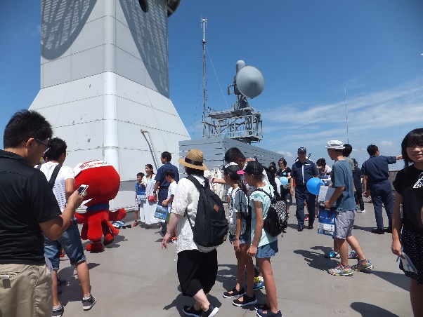 屋上にのぼり、明石海峡の雄大な海上を見下ろしました。船が行き交う様子がよく見え、その航行数が多いことに気づきました。また、屋上中央部にあるレーダーの施設を見学しました。