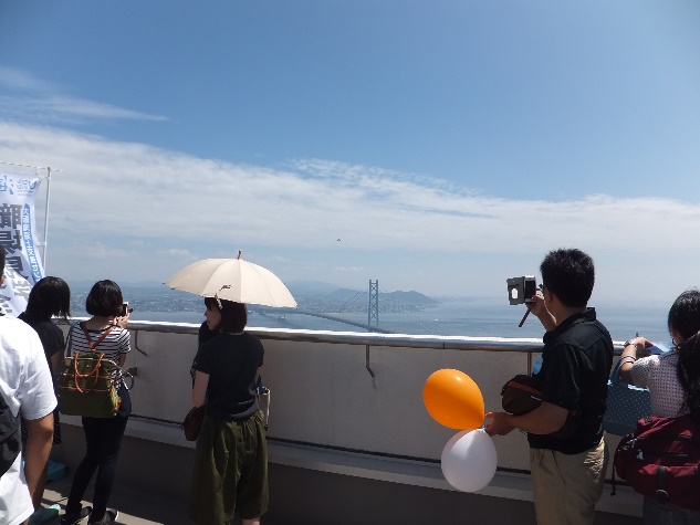 大阪湾海上交通センターの屋上から明石海峡を見学