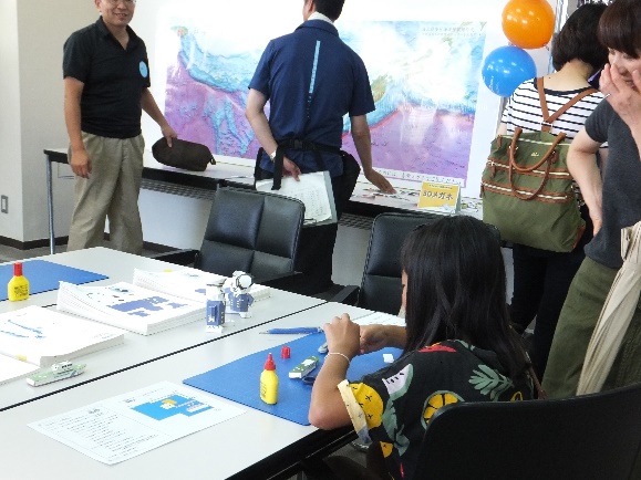 海上保安庁の巡視船、建物、キャラクター等のペーパークラフトをはさみとのりで作成することで、船の構造等を学ぶことができました。