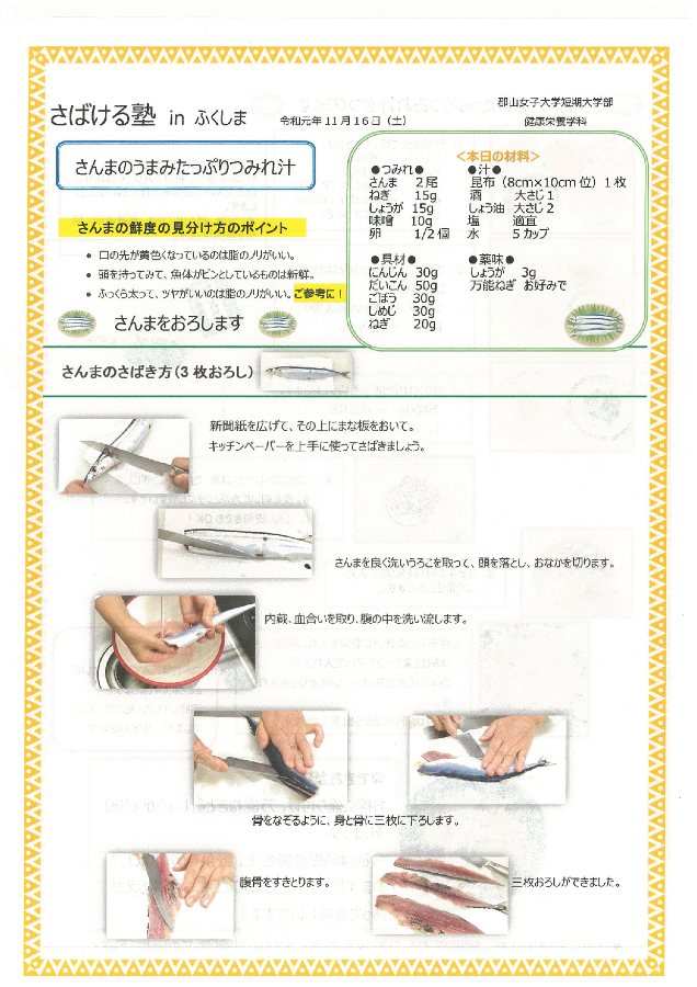 福島県では、郡山女子大学短期大学部の協力のもと、さばける塾を開催しました。