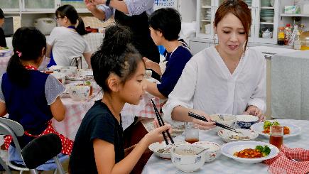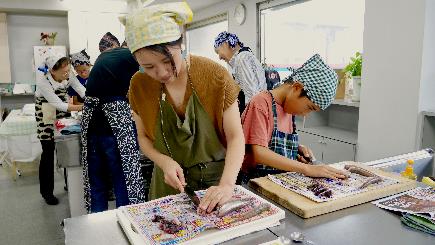 石川県での「さばける塾inいしかわ」は4年目となり、今回は青木クッキングスクールに親子9組20人が集まりました。