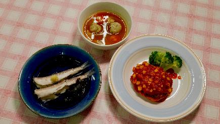 さばいたメギスで、「メギスのハンバーグ」、「魚団子のカレースープ」の洋食2品に加え、昔から金沢市民の食卓で定番となっている和食「メギスの塩炒り」の合計3品を作って、おいしくいただきました。