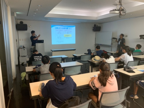 ここでは前回の内容をふまえ、いわきの代表魚種であるサンマについてさらに深く学習しました。世界でも類を見ないサンマの水槽内繁殖や、飼育の成功から見えてきたその生態について、子どもたちは熱心に話を聞いていました。