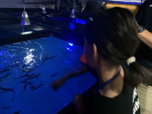 その後、飼育水槽に移り、バックヤードでサンマの餌付けを体験。その生態や飼育の難しさを“見て、体験” することで、海に携わる仕事に興味を持ってもらう機会を作り出しました。