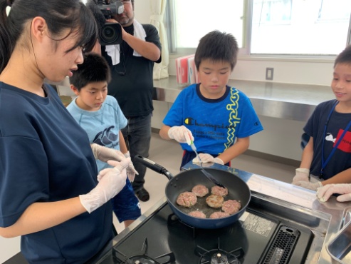 次に、東京イベントで商品化する「ぽーぽー焼き」の調理を体験してもらいました。なお、講師役を務めた高校生たちは、8月1日(木)に前もって「ぽーぽー焼き」の調理実習を実施していました。