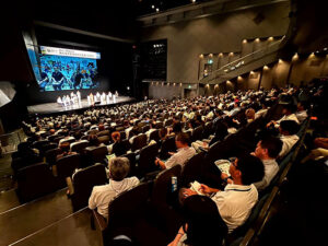 会場には児童や学生も参加しました。海と日本プロジェクトの体験学習イベント「しじみ調査隊」に参加した児童は、ステージに登壇して活動を報告しました。瀬田川でのしじみ漁体験や、淀川での生き物観察、大阪湾での漁港見学などで、生物の多様性や環境との関係を学んだと発表。田中律子さんからは「たくさん自然と触れ合って遊んで、自然を守らないといけないと実感してほしい。今だけが良いのではなく、10年後100年後の海を守るために、自分が何ができるんだろうと考えてほしい」とお話がありました。