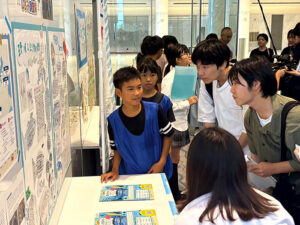 ホワイエでは、参加した約30団体によるポスターセッションが行われました。琵琶湖の研究機関や滋賀県の関係課、市民団体や企業などが出展するほか、ステージ発表を行った「しじみ調査隊」や使い捨て容器削減に取り組む「Rキッズ」など、児童らの壁新聞なども掲出され、バラエティ豊かな展示が並びました。参加者は互いに情報交換を行い、会場は熱気に包まれていました。