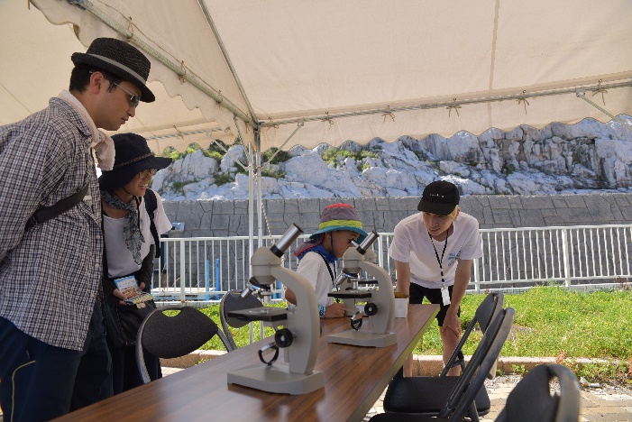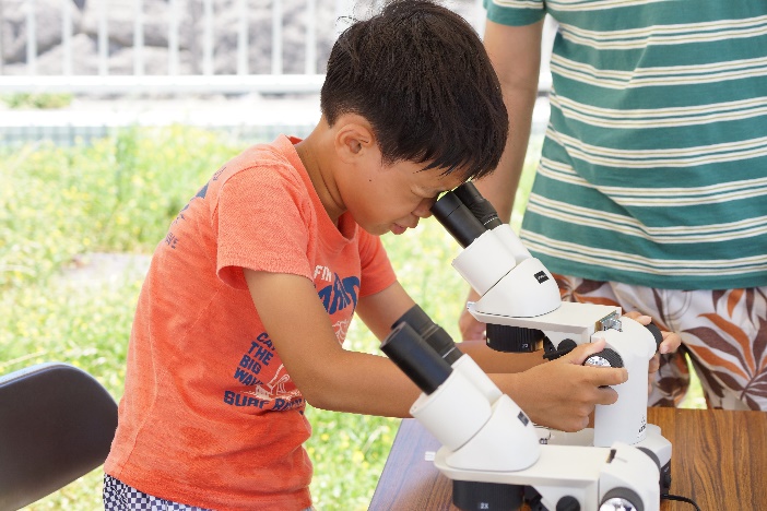 小さな生物はどんな形をしているのか?また、魚のうろこや海藻は、ミクロの世界ではどのような形をしているのか?顕微鏡を使って、みな真剣に調べていました。
