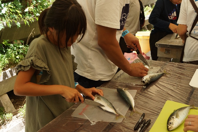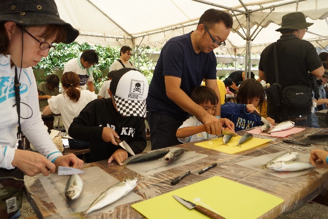 魚をさばくところから、干物にするまでの過程を親子で調理してもらいました。地元のお母さん方が懇切丁寧に指導。美味しい干物が出来上がりました!これを機会に、家庭でのお魚料理にチャレンジしたいというお子さんもいました。