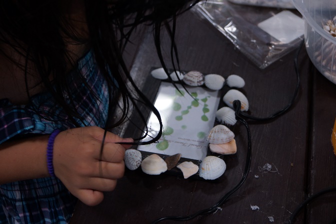 貝殻などを使って、世界に一つしかないオリジナルフォトフレーム作りに挑戦しました。保護者の方もお子さんと一緒に工作に参加することができました。一緒につくったり、テーマを決めて競ったり、いろいろな楽しみ方をされていました。