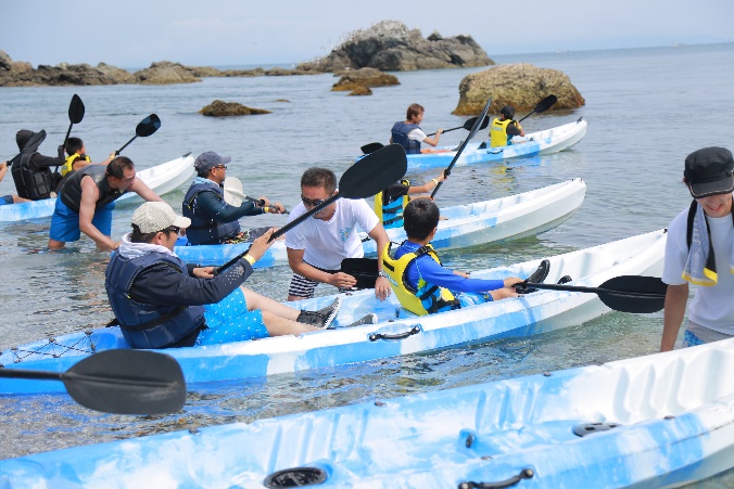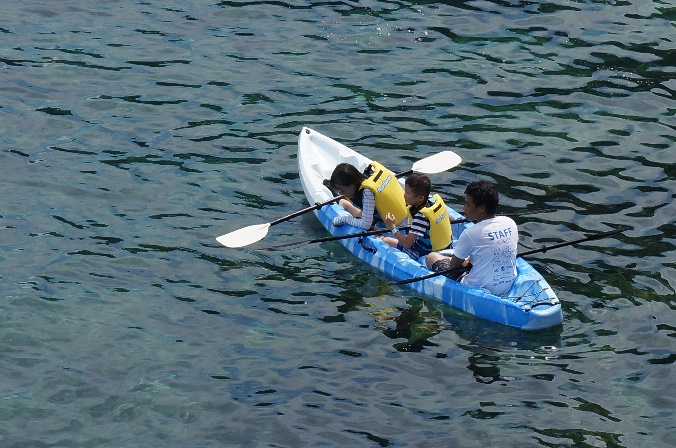 マリンレジャーの定番シーカヤックを通して、海の楽しさを存分に味わってもらいました。心地よい海の風にあたりながら、白崎の海を存分に感じることができました。