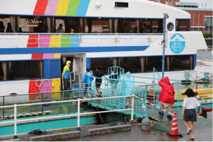 当初予定されていたサップ、カヌー、ボートでの海洋体験は悪天候のため中止となりましたが、代わりに清水港湾内クルーズに変更。クルーズ中には野生のイルカに遭遇するというサプライズがあり、子どもたちから歓声が上がりました。