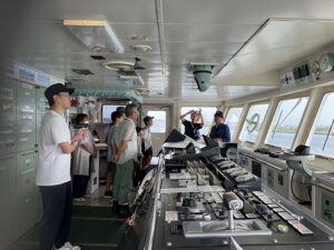 2日目は研修船「望星丸」に乗船。船上での海洋生物の採取や観察はできませんでしたが、海洋に関する講義や船内見学、さらに急遽開催された海や魚に関するクイズ大会を通じて、楽しみながら海の知識を深めました。