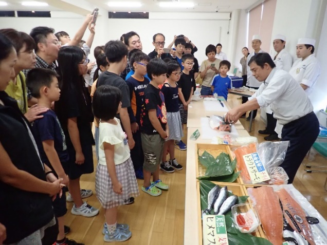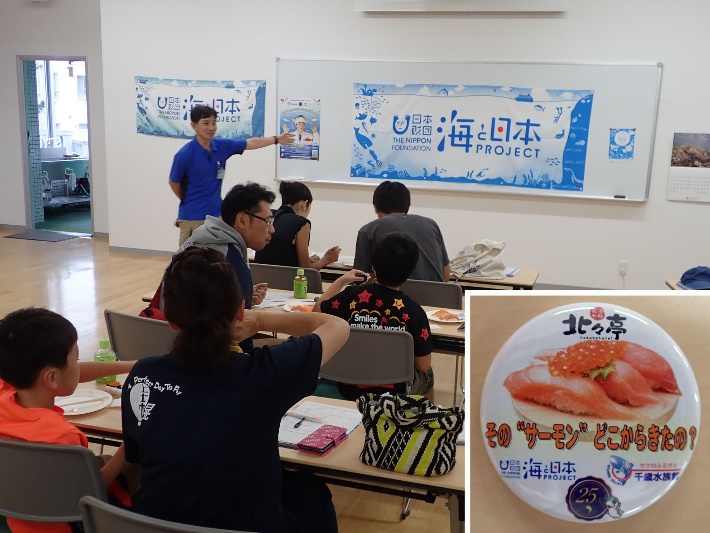 9月8日(日)、今年9月で開館25周年を迎える「サケのふるさと千歳水族館」で参加者31名(うち、高校生3名、中学生2名、小学生11名)を迎え、寿司ネタとしての「サーモン・サケ」をテーマとして、プレゼンテーションによる学びと自ら寿司を握って食する体験学習を行いました。