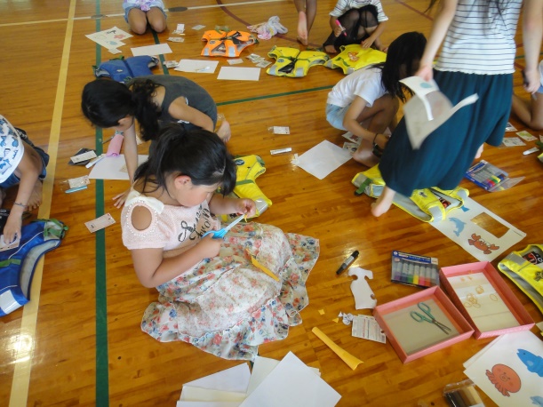 自分だけのオリジナルのライフジャケットを作成し、常時からのライフジャケットの着用を促進するとともに、ライフジャケットの効果等の説明など、水辺の安全の啓発を行いました。