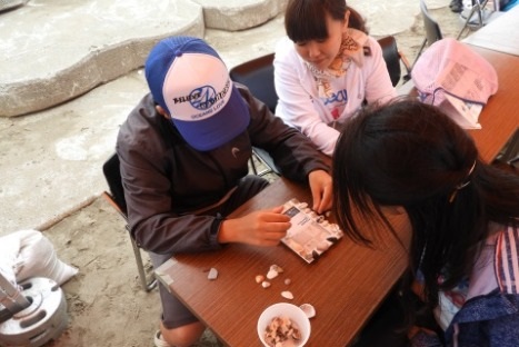 サーフィン体験、お昼ご飯の後は貝殻を使ったフォトフレーム作りをしました。