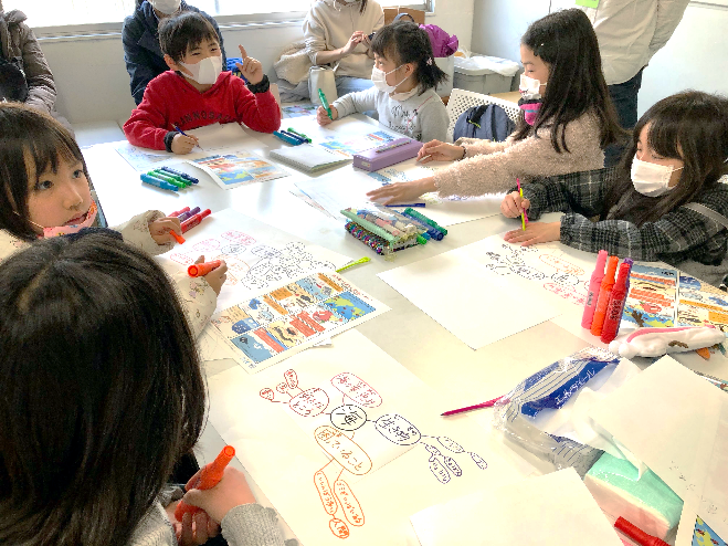 未来も美味しい魚が食べられるようにと様々な取り組みを行う海鮮居酒屋「四十八漁場」と共に、「ウェビングマップ」を活用した通常のワークショップの内容だけに留まらず、魚仕分けセンターや店舗での見学・体験を交えながら、海洋資源の持続可能性について学び、「自分たちが今出来ることは何か?」を一緒に考えることを目的としました。