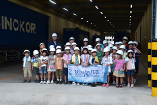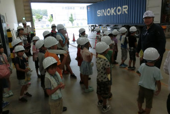 地元にある工場でつくられた製品が、同じく地元にある港からすぐに世界各地へ運ばれていくこと、大きい機械やたくさんの作業車での作業を、子どもたちは目を大きくして見学していました。