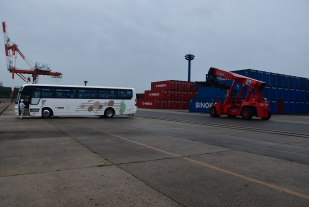 地元の酒田工場でどのような製品がつくられているかの説明と、実際に製品を製造している施設を見学し、製造された製品が海外に輸出されるまでの製品の保管、運搬、酒田港国際ターミナルでのコンテナ荷役作業まで一貫して見学しました。