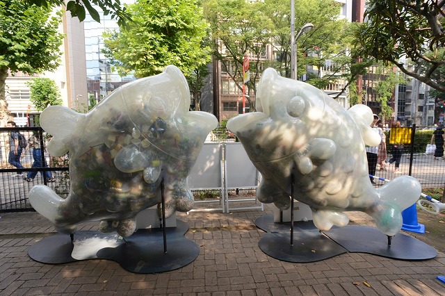 渋谷区という日本を代表する大きな街で海の現状を伝えて、「海の叫び魚(うぉー)」に当日拾ったごみを詰めました。渋谷の街で「街のゴミが海に行ってしまっている」ということ、「海に出たゴミが魚・海鳥が食べてしまっている」ことを伝えました。