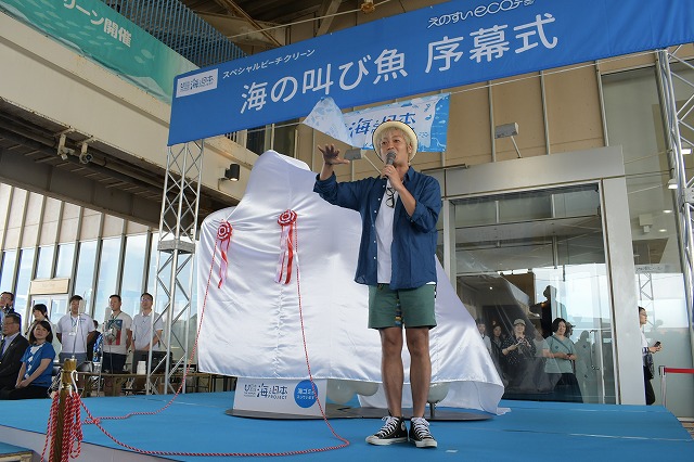 今回は、「海のピンチは街が救う」プロジェクトの湘南編でもあり、新江ノ島水族館さんの第100回ビーチクリーンでもあります。また、あたためてきた「海の叫び魚(うおー)」のお披露目でもありました。そのため、タレントのつるの剛士さんが参加してくださったり、大規模な分別をしたり、まさにスペシャルな日となりました。