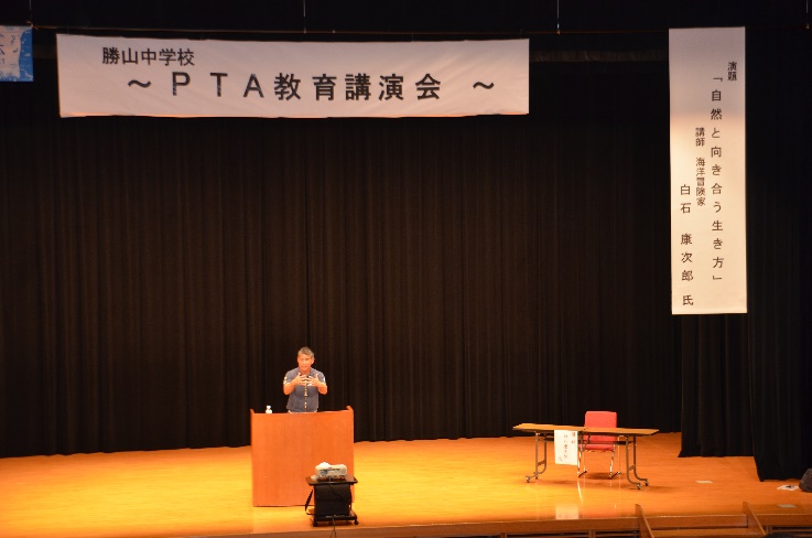 冒険の中で様々な困難に直面しながらも乗り越えてきた経験、自分の夢に挑戦する中で出会ってきた人々のことや生い立ちなどの話や、海・自然の素晴らしさや厳しさなど、熱を込めた講演でした。中学生が多く参加した講演会だったため、人と比べず、自身のやりたいことを見つけ、楽しみながら行動していくことの大切さについても話がありました。