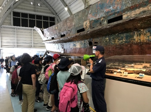 平成13年発生した九州南西海域工作船事件にかかる工作船及び回収物などを見学しました。