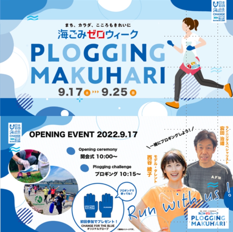CHANGE FOR THE BLUE 千葉県実行委員会(事務局:千葉テレビ放送内)は、2022年9月17日(土)から2022年9月25日(日)の秋の海ごみゼロウィークに、千葉県幕張にてプロギングイベント「海ごみゼロウィークPLOGGING MAKUHARI」(以下、本イベント)を開催致します。本イベントは、日本財団が推進する海洋ごみ対策プロジェクト「海と日本プロジェクト・CHANGE FOR THE BLUE」の一環で開催するものです。