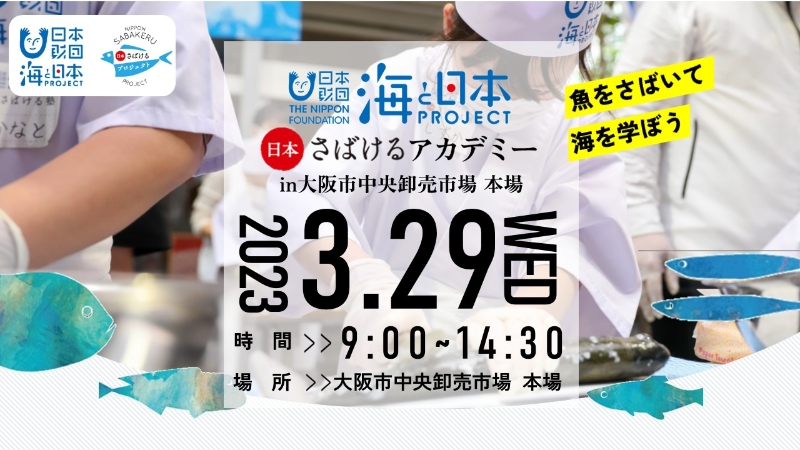 | 開催日付の補足/日程詳細 | 日時:2023年3月29日(水) 9:00~14:30 (受付8:15) 内容:(1)田村亮さんと一緒に海を学ぼう! (2)巨大市場で海の食文化を体験! (3)日本さばける塾in大阪市中央卸売市場 本場 ※時間は多少前後します。 参加:小学4~6年生とその保護者16組32名 ※事前応募・抽選制 |