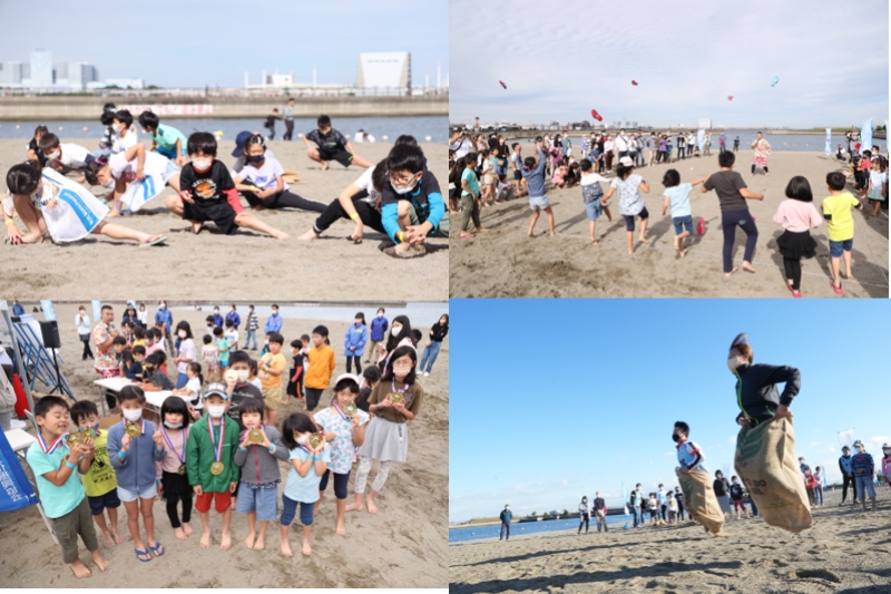 ビーサン跳ばし、砂袋リレー、レスキューレースと楽しいコンテンツがたくさん!