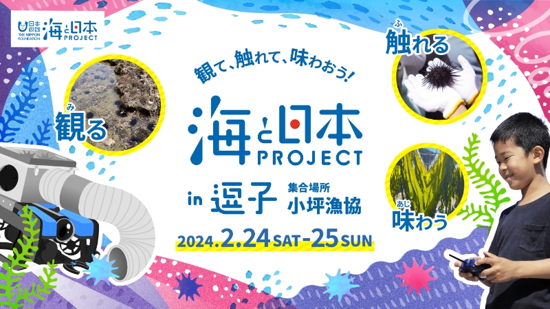 このイベントでは、「1.海中ロボットで海の中を観察」「2.小坪漁港の磯焼け対策やワカメ加工体験に触れる」「3.旬のシャキシャキ生ワカメ試食」の3つのコンテンツを楽しむことができます。