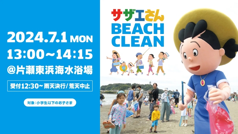 今年も江の島海水浴場片瀬東浜は「サザエさんもビーチクリーンをした浜、片瀬東浜海水浴場」として更なる安心・安全な浜を目指して様々な取り組みをしてゆきます。今回のビーチクリーンは、海離れが加速する子供たちにサザエさんと一緒に楽しみながらゴミ拾いをしてもらい、海での素敵な思い出を作ってもらえればと企画しました。皆様のお越しをお待ちしております。
