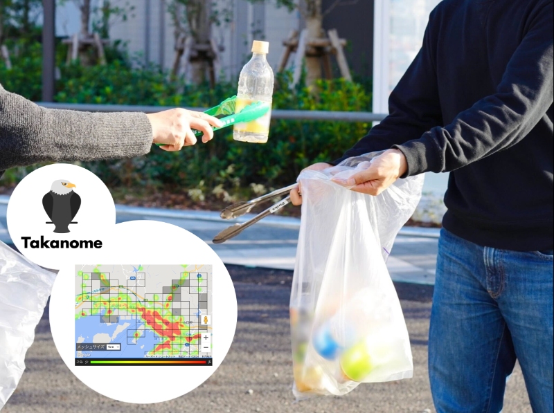 AIを活用したごみ分布調査サービス「タカノメ」の調査結果によって得られた、周南市内のごみ分布データを活用し、効率的な清掃活動に挑戦します。