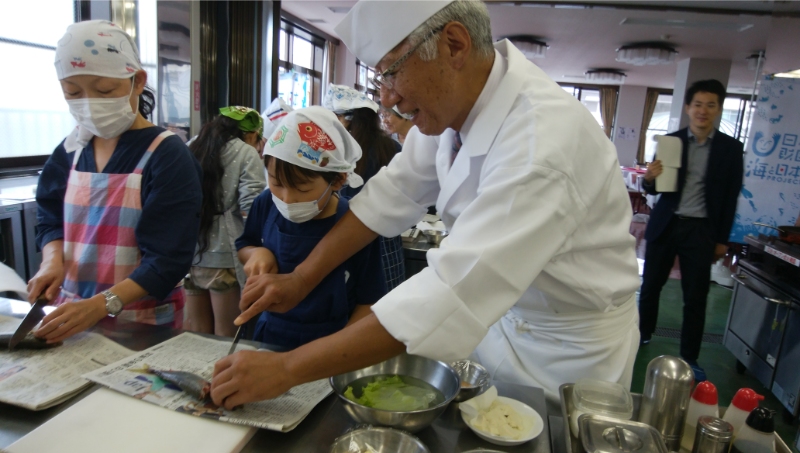 日本全国に「さべける男子」「さばける女子」といった、魚をさばける人を増やすムーブメントを起こすべく、参加者が実際に魚をさばく体験をしていただくイベントが「海と日本 さばける塾」です。今回は、新潟調理師専門学校にご協力いただき、皆さんで鯵をさばいて「鯵のから揚げきのこ丼」をつくります。
