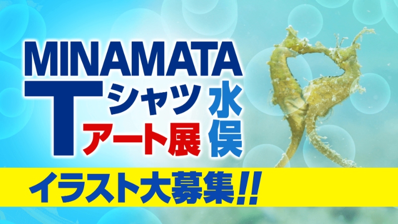 KABで募集したタツノオトシゴ(水俣の海再生のシンボル)のイラストをTシャツにプリント。Tシャツの生地は、古着をリサイクルして再生物質から作ったものです。100枚のオリジナルTシャツを海水浴場に展示します。